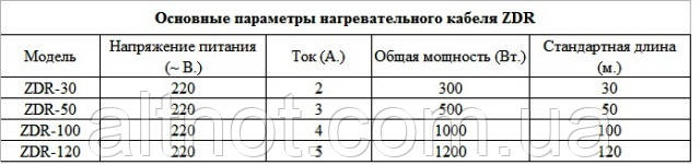 Потужність одного метра кабелю 10 Вт. Температура нагрівання провідника 60÷70ºС.